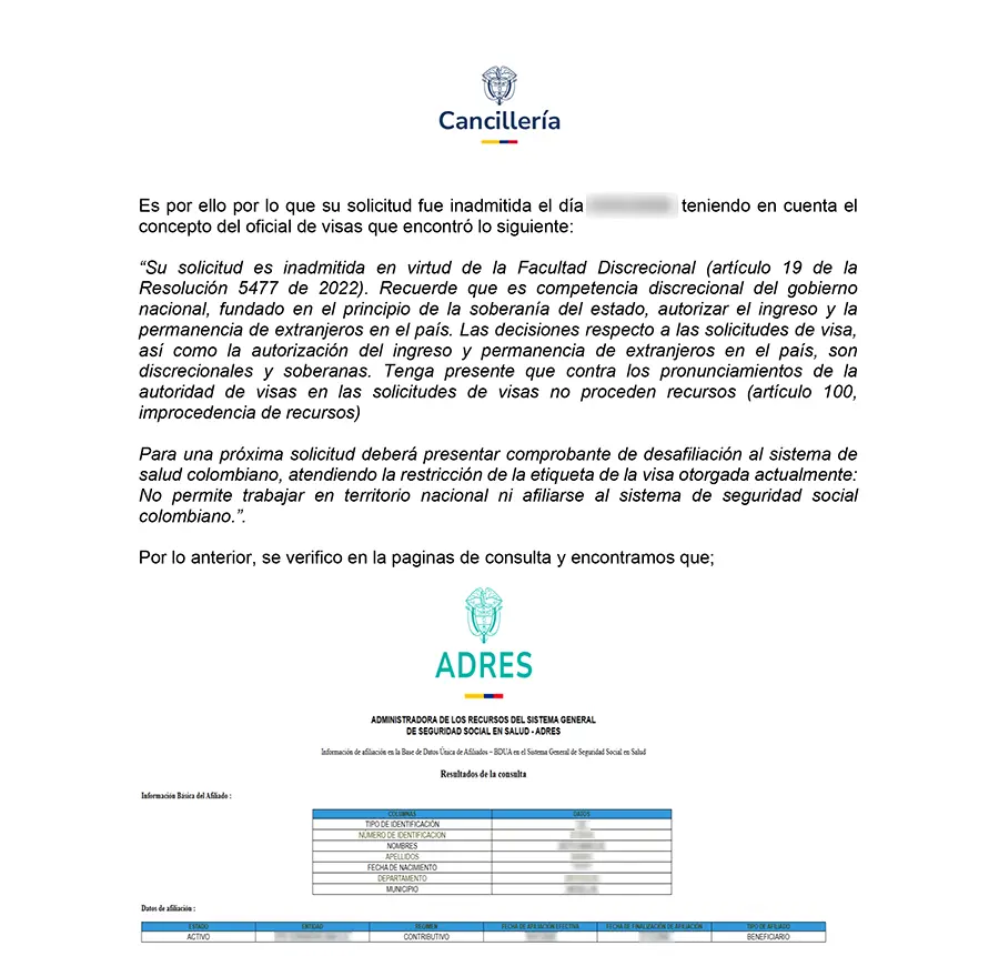 Si su póliza de salud para visas en Colombia no se alinea con la duración de su estancia prevista, corre el riesgo de recibir una aprobación de visa significativamente más corta o de enfrentar una interrupción total en su proceso administrativo.